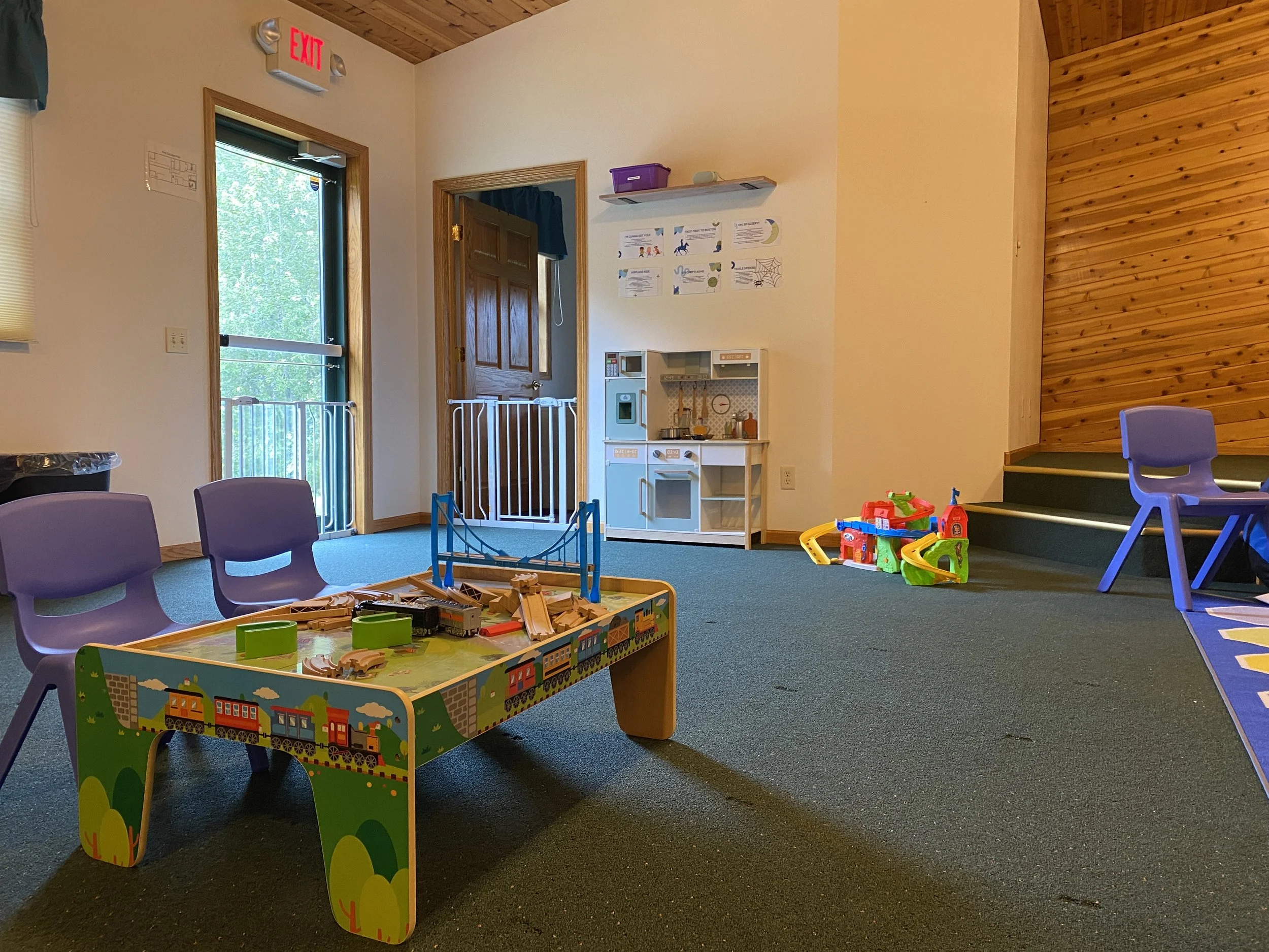 Located on 4 wooded acres, your child will receive individualized ABA therapy surrounded by the peace and quiet of the Northwoods. Our clinic space includes two classrooms, a cafeteria space, and a fenced in playground. Children will spend their day learning and playing in a pre-school like classroom alongside peers, with amble opportunities to play outside across their day.